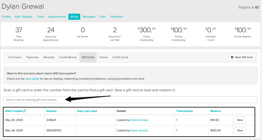 Reload An Existing Gift Card Jane App Practice Management Software For Health Wellness Practitioners